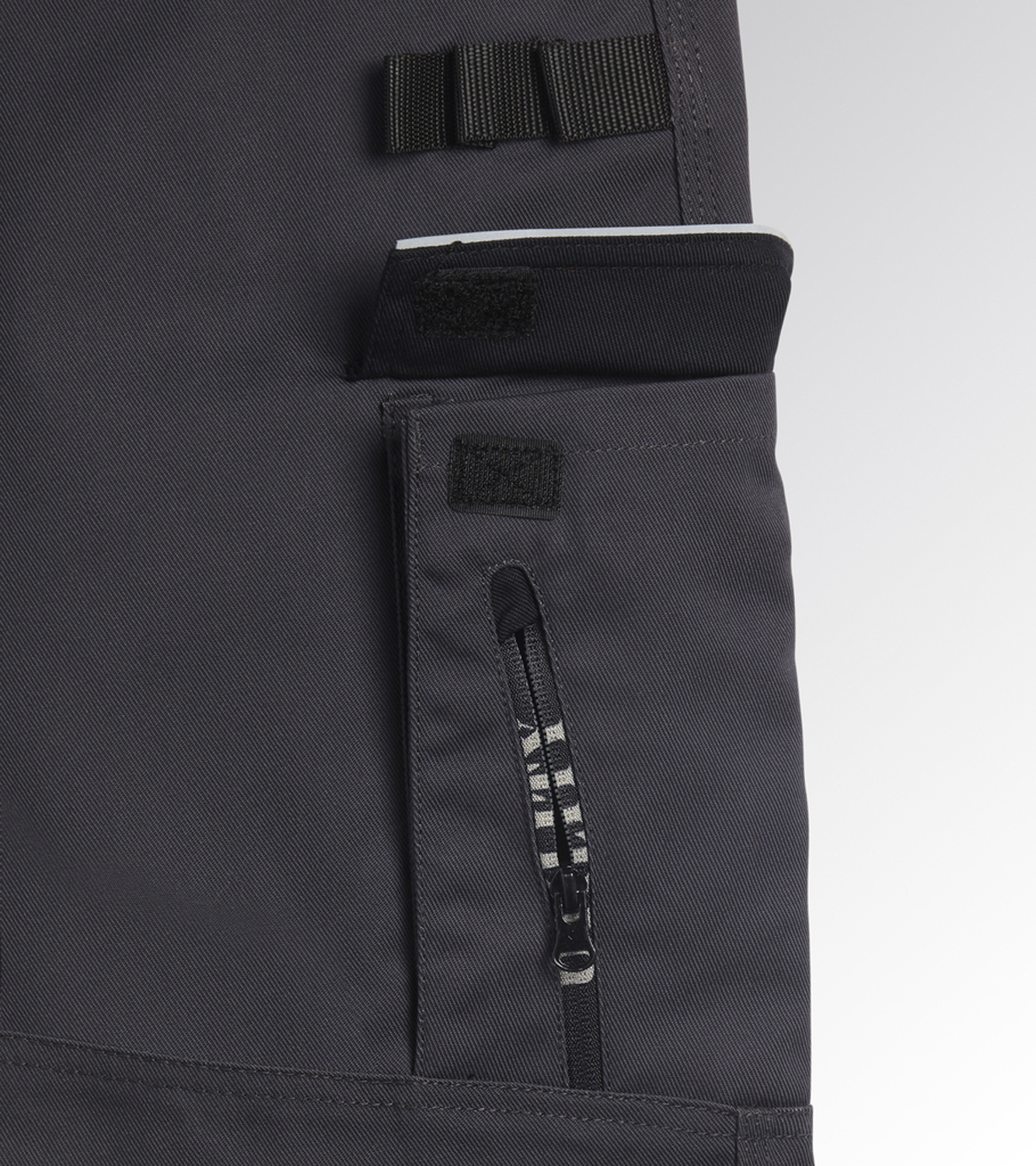Radne hlače od pamuka i poliestera s vodootpornim koljenima s otvorom na gornjoj strani, stranim džepom za alate, držačem čekića i džepom za mjerilo u otpornom materijalu na trošenje. Oblikovana remenica i elastični umetak u preponama za veću pokretljivost. Trostruki šav, reflektirajući detalji. Ergonomski dizajn nogu i prilagodljiva duljina s pritiskom; potkoljenica ojačana materijalom otpornim na trošenje.
