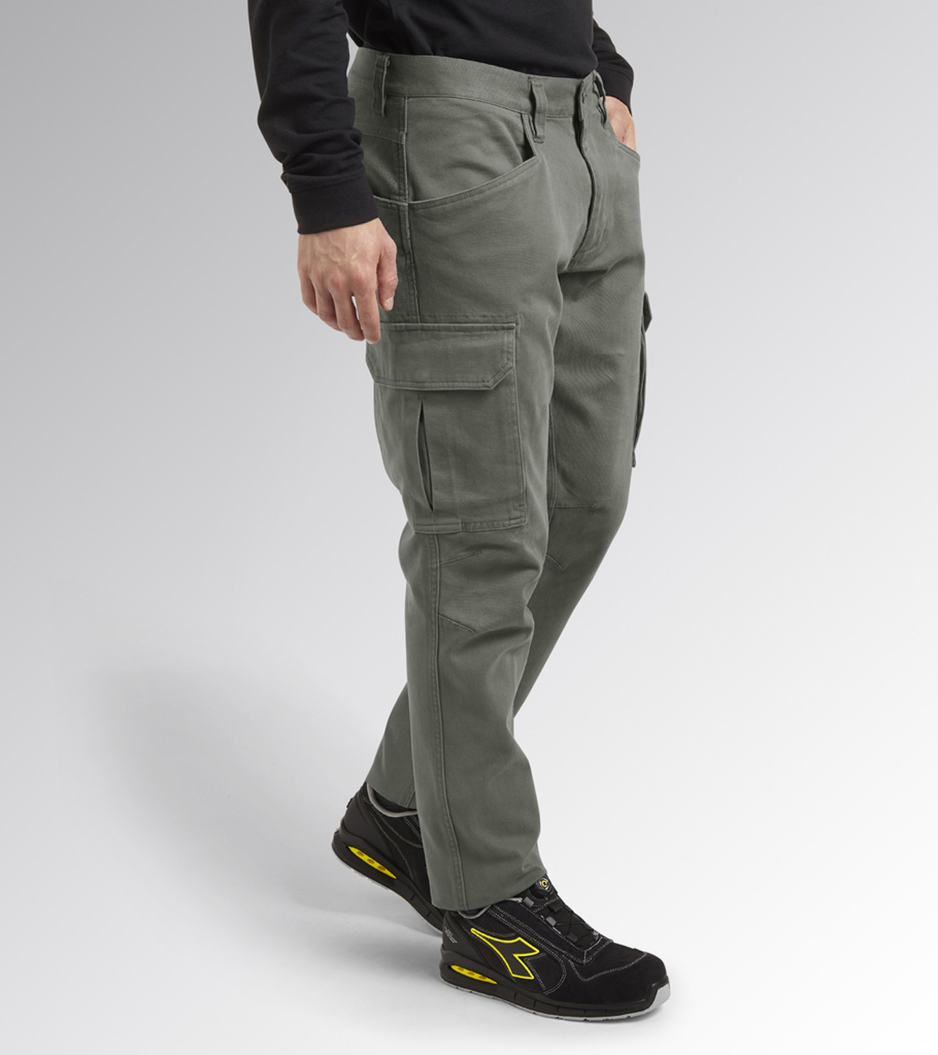 Cargo hlače sa sedam džepova: dva prednja otvorena džepa, dva velika bočna džepa, dva stražnja otvorena džepa s gumbima i jedan pomoćni džep. Istaknute karakteristike: